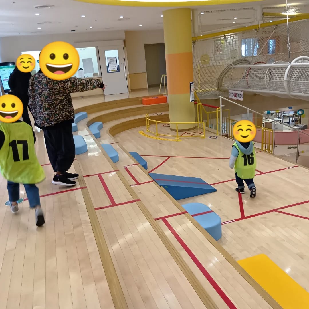 室内の大型ネット遊具では、登ったりバランスを取ったりしながら、「できるかな?」と挑戦する姿が見られました。